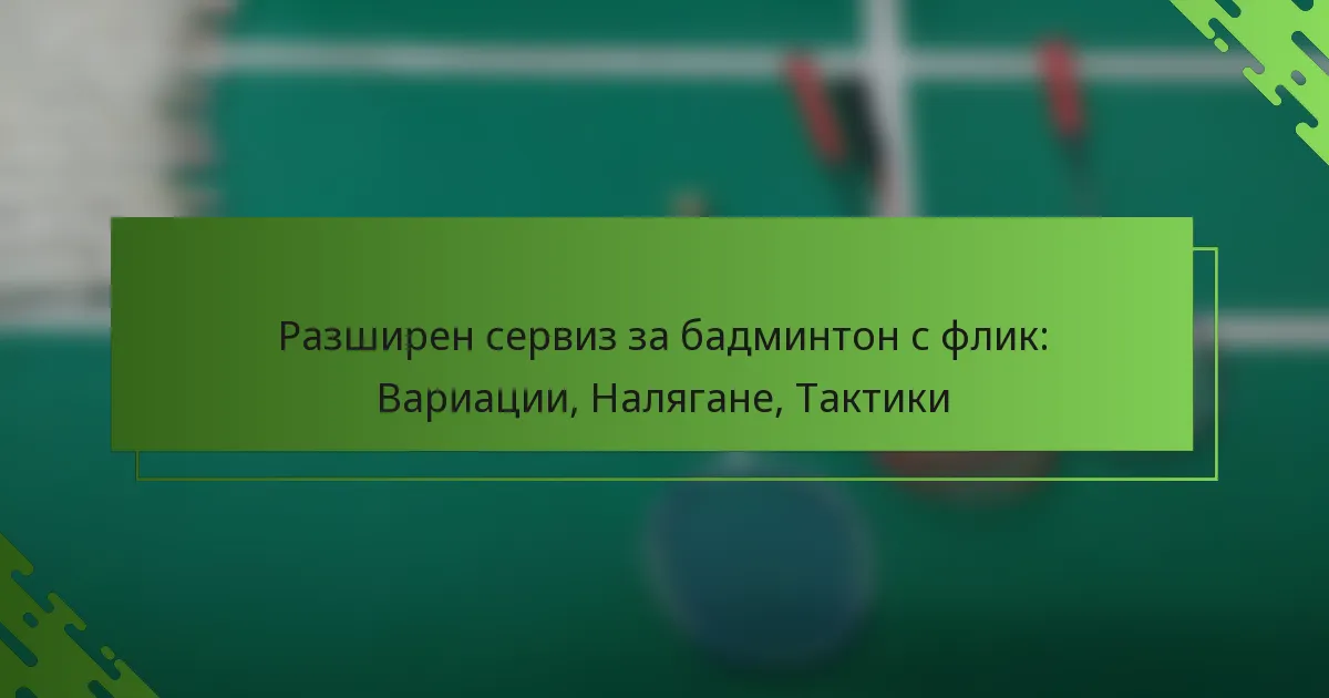 За да изпълните флик сервиз ефективно, се фокусирайте върху бързо движение на китката и прецизно време, за да изненадате противника си. Тази техника изисква практика, за да овладеете комбинацията от бързина и ъгъл за максимално въздействие.